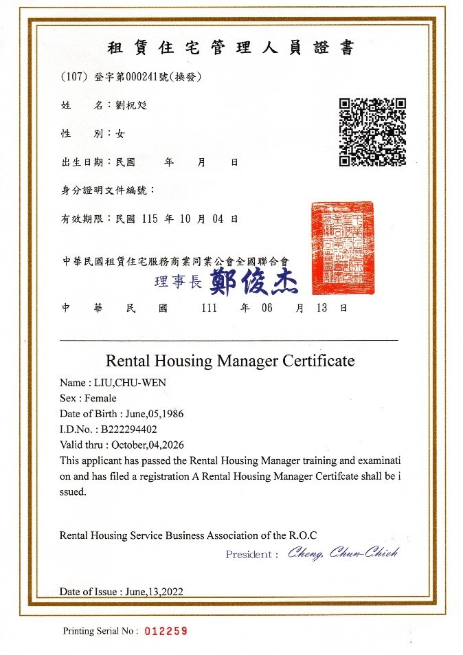 - 6 業務人員皆取得合法營業員資格證書及租賃住宅管理人員證書
